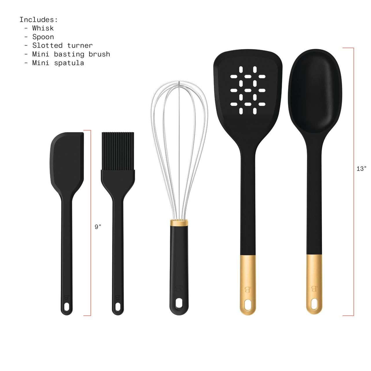 1.Includes slotted turner, spoon, mini spatula, whisk, and mini basting brush