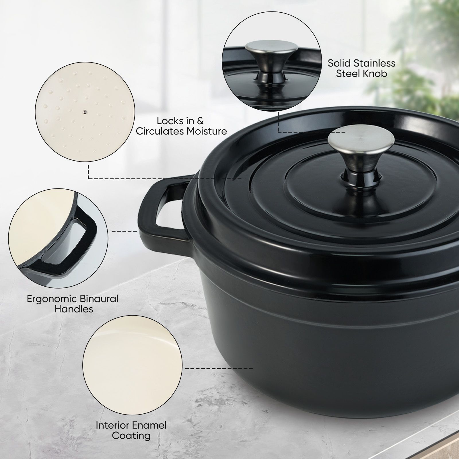 ��LARGE 6.5 QT CAPACITY:Our cast iron dutch oven can be used for multiple cooking methods such a cooking, baking, stewing etc.With this Large capacity enameled cast iron, can meet all the needs of family gatherings.The highest temperature tolerance is as high as 500°F.