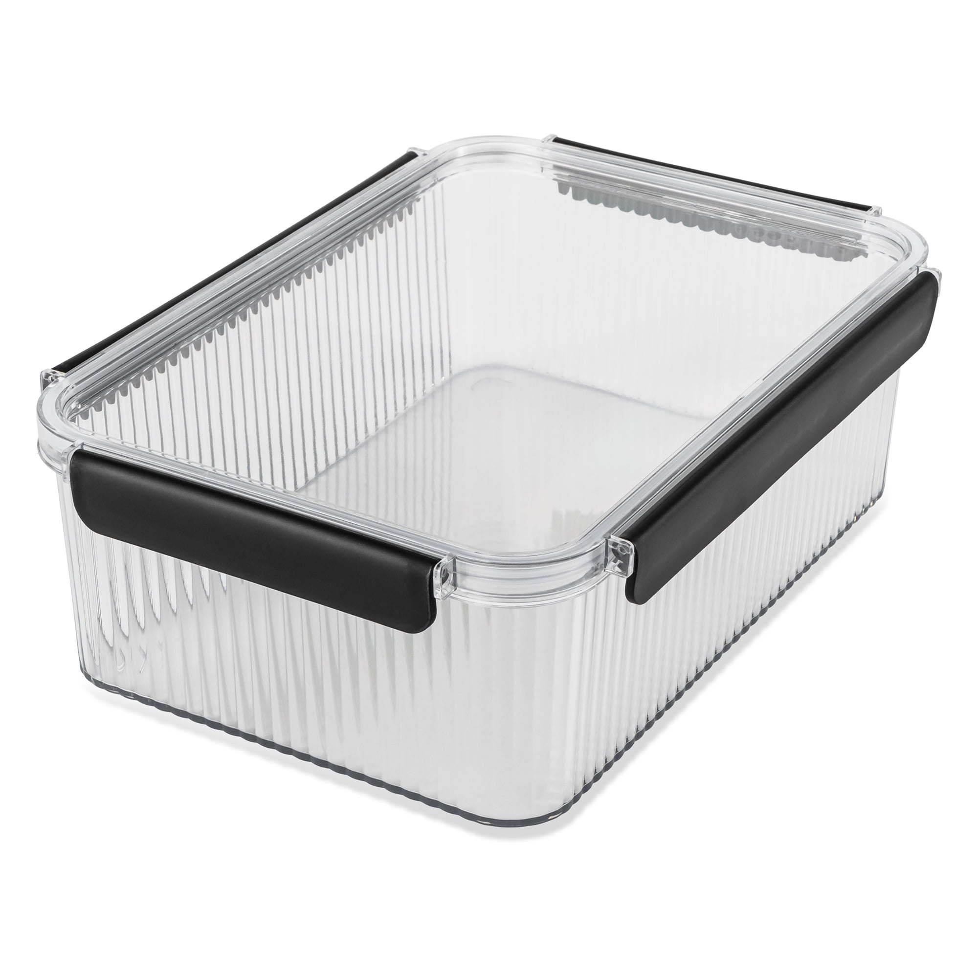 Upgrade your pantry organization with the Thyme and Table 16 Cup Clear Ribbed Pantry Storage Container. This stylish container helps you easily store and access your dry goods while keeping them fresh. The ribbed design adds a modern touch, and its secure lid ensures your food stays protected. Optimize your pantry with a durable, stylish storage solution.