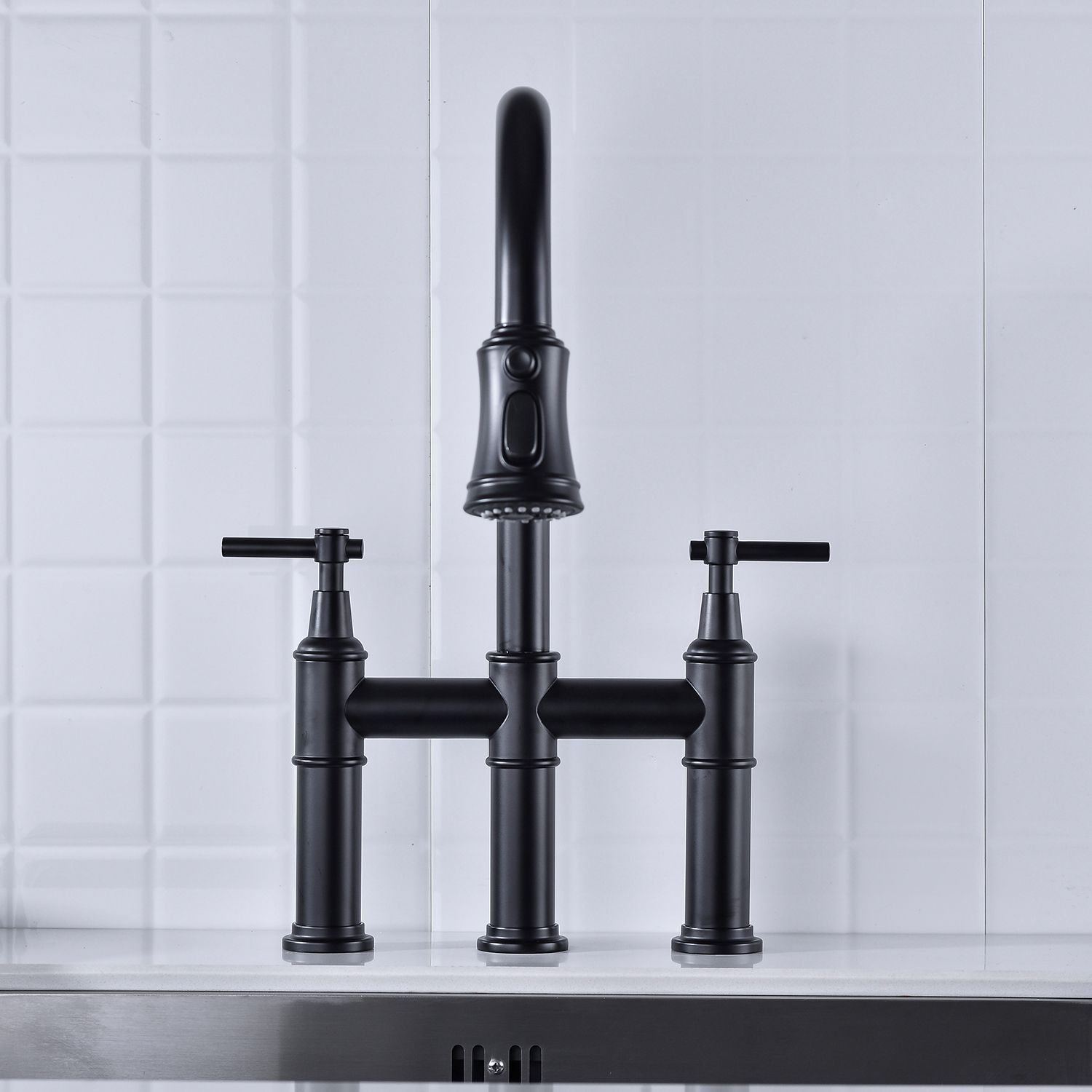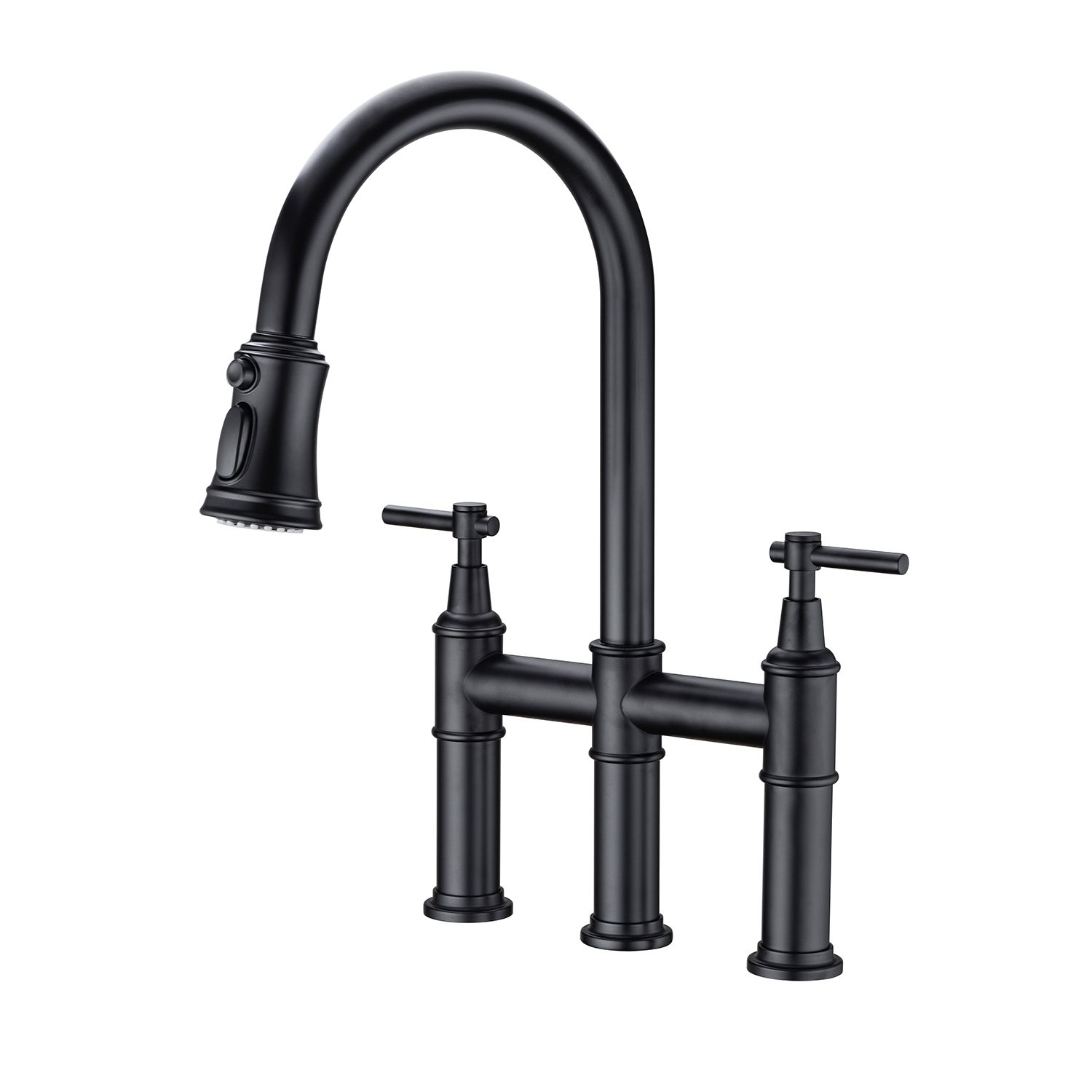 Bridge Kitchen Faucet with Pull-Down Sprayhead in Spot Bridge Kitchen Faucet with Pull-Down Sprayhead in Spot Bridge Kitchen Faucet with Pull-Down Sprayhead in Spot
