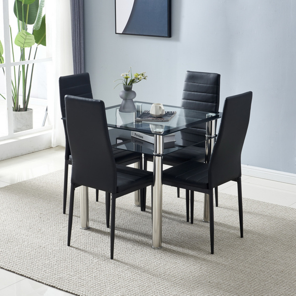 4pcs Elegant Assembled Stripping Texture High Backrest Dining Chairs Black