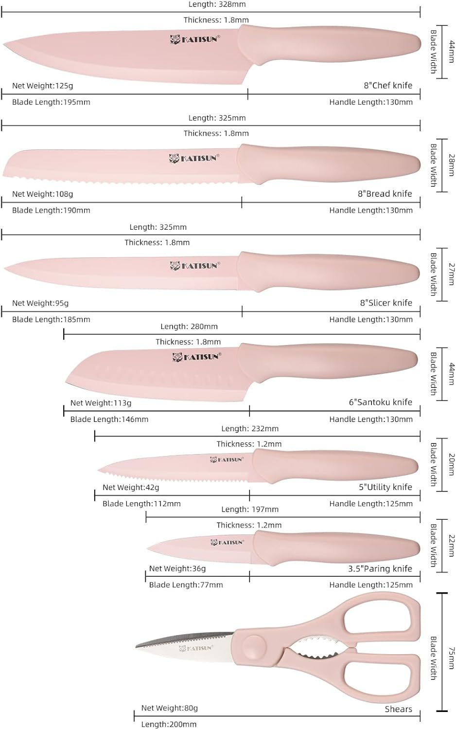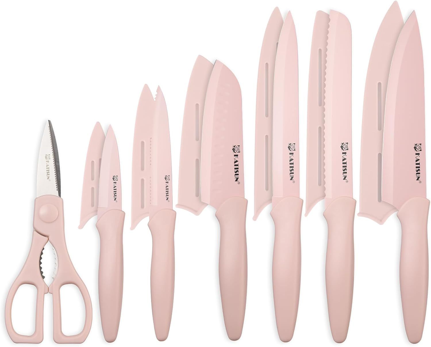 Kitchen Knife Set with Guards, 13 Piece Pink Non-Stick Paint Boxed Knives Set, Anti-Rust and Dishwasher Safe Kitchen Knife Set with Guards, 13 Piece Pink Non-Stick Paint Boxed Knives Set, Anti-Rust and Dishwasher Safe Kitchen Knife Set with Guards, 13 Piece Pink Non-Stick Paint Boxed Knives Set, Anti-Rust and Dishwasher Safe