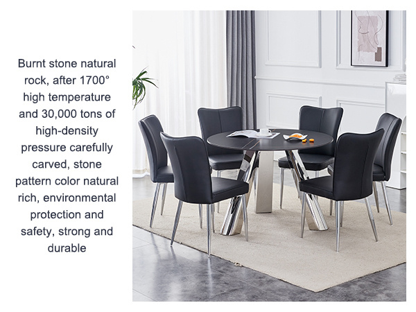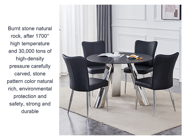 42-inch Sintered Stone Dining Table and Chair Set Mirror-polished Stainless Steel Base 4 Black PU Chairs Modern Luxury Round Dining Table Series 42-inch Sintered Stone Dining Table and Chair Set Mirror-polished Stainless Steel Base 4 Black PU Chairs Modern Luxury Round Dining Table Series 42-inch Sintered Stone Dining Table and Chair Set Mirror-polished Stainless Steel Base 4 Black PU Chairs Modern Luxury Round Dining Table Series